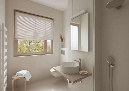 Das Haus besitzt vier Schlafzimmer, ein Arbeitszimmer und drei Bäder mit großzügigen schwellenlosen Duschen oder Badewannen. Die Bäder sind modern gefliest und mit hochwertigen Armaturen ausgestattet. Großzügige Fenster mit dreifacher Wärmeschutzverglasung lassen viel Tageslicht in die Räume und sorgen mit ihrer modernen Bauweise für optimalen Schall- und Wärmeschutz.
