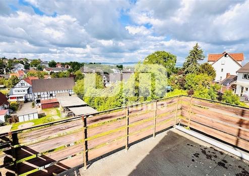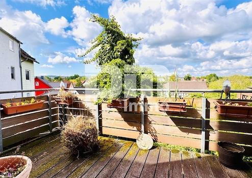Vom Wohnzimmer haben Sie direkten Zugang auf den 7,95m² großen Balkon mit Holzdielenboden, der mit einem schönen Panoramablick zu überzeugen weiß.
