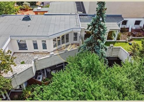 Der große Garten sowie der an den Wohn- und Gewerbebereich im Obergeschoss angeschlossene Dachterrassenbereich bieten die seltene Möglichkeit, urbanes Leben in zentralster Lage mit Wohnen in grüner und ruhiger Umgebung zu kombinieren.