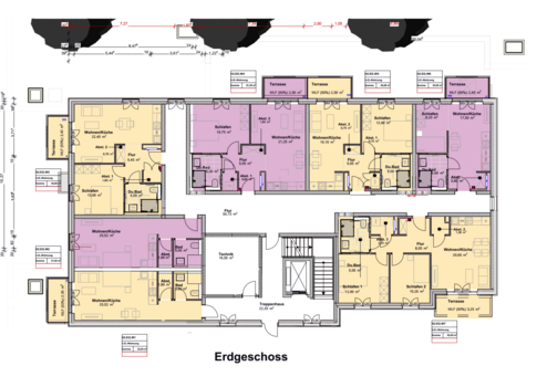 Es stehen Wohnungen von ca. 30 bis 63 m² als 1, 2 oder 3 Zimmer, Kochen, Bd, überwiegend mit Balkon. Die Wohnungen werden zur Optimierung der Förderung in barrierefreier Ausführung errichtet.