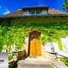 Bereits die lange, mit Naturstein gepflasterte Einfahrt vermittelt den Eindruck einer gepflegten, repräsentativen Immobilie. Die klassische Architektur mit dekorativen Fensterläden, massivem Natursteinsockel und einem mit wildem Wein bewachsenen Putz strahlt Charakter und zeitlose Eleganz aus. Die große Holzeingangstür mit Glaseinsätzen unterstreicht den einladenden Landhausstil dieser besonderen Liegenschaft.