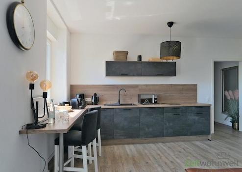 ### Please note the availability date! Bitte das Verfügbarkeitsdatum beachten! ### großes möbliertes Luxusapartment mit Balkon im 1. Obergeschoss; WLAN, Aufzug und Waschmaschine vorhanden; ein großer heller Wohnraum is unterteilt mit einem massivem Raumteiler; vorderer Bereich mit komfortabler Einbauküche mit Tresen, breites Sofa; hinterer Bereich mit Doppelbett, Wand-TV, Kommode, Sessel, modernem Schrankregal; Ausgang zum überdachten Balkon; Bad mit Dusche und WC; Wohnungsflur mit Garderobe; Pauschalmiete 990,00 Euro (bei 1 Person); Kaution 1.600,00 Euro; Endreinigung 100,00 Euro; Mindestmietdauer 3 Monate; Pflichtangaben zum Energieausweis: Energieausweis gültig bis: 22.05.2032; Baujahr Gebäude: 2022; Energieausweis: nach Bedarf; Energieverbrauch: 15.7 kWh/(m²a); Energieeffizienzklasse: A+; Primärer Energieträger: Strom