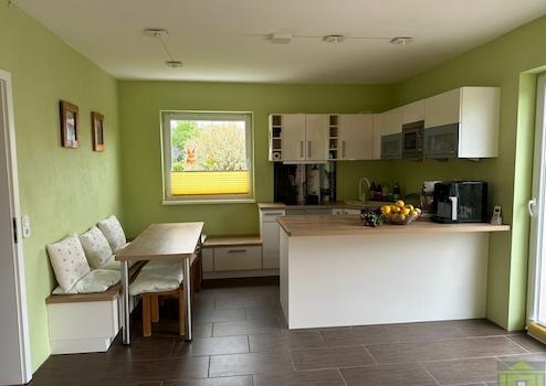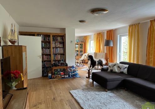 Im Souterrain befinden sich zusätzlich zur ELW auch ein Hauswirtschaftsraum, sowie Keller, welche durch eine Massivholztreppenanlage auch aus dem Erdgeschoss erreicht werden können. Die Einliegerwohnung hat eine Größe von ca. 51,9 m2 und ist aufgeteilt in ein Wohnzimmer mit offener Küche, einem Schlafbereich, einem Badezimmer sowie einem Flurbereich. Die Wohnung ist momentan offen gestaltet. Es kann aber auch der Schlafbereich durch eine Trockenbauwand abgetrennt werden. Die ELW verfügt zusätzlich über eine großzügige Terrasse.