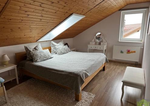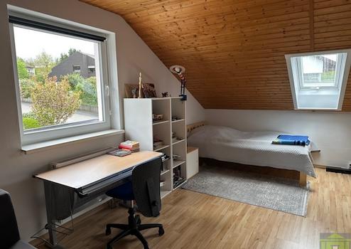 Im Dachgeschoss befinden sich das großzügige Schlafzimmer, das Badezimmer mit Dusche, Badewanne, WC und Doppelwaschtisch sowie 3 weitere Zimmer (Kinder- oder Arbeitszimmer). Die Wohnung hat eine Wohnfläche von ca. 180,8 m². Zusammen mit den Nutzflächen im Souterrain (42,7 m²) hat das Objekt eine kombinierte Wohn-Nutzfläche von ca. 275,4 m².