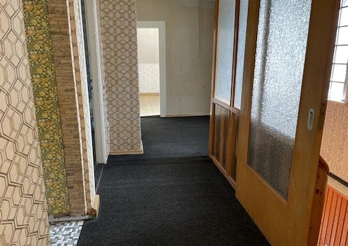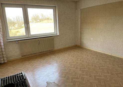 Im Erdgeschoss befindet sich ein Bad mit WC, Flur, Küche, Wohnzimmer und zwei Räumen.