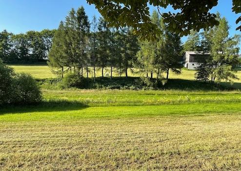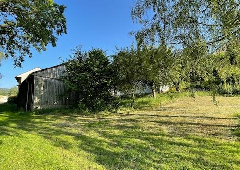 Das Grundstück besteht aus vier Flurnummern. Dazu gehören auch zwei Flächen Wiesen. Durch die Wiese geht ein kleiner Bachlauf.