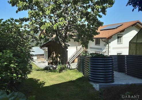 Dazu gehört ein großer Garten, ein Balkon und eine ca. 130 m² große Terrassen, die sich über zwei Seiten erstreckt. In dem schönen Garten können Sie entspannte Stunden verbringen und Ihr eigenes Gemüse ernten.