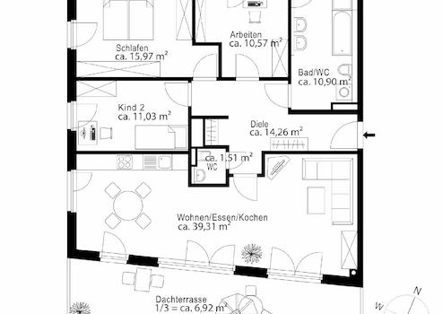 - Dachterrasse mit Süd-Ost-Ausrichtung