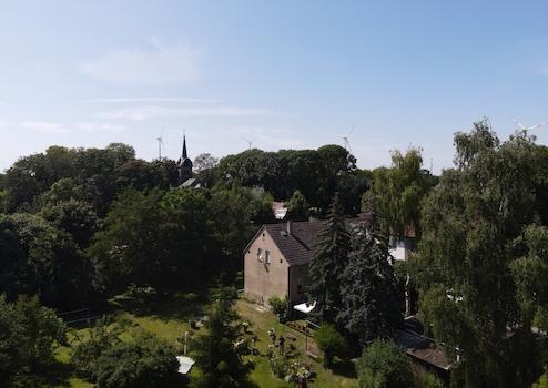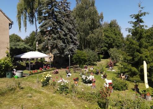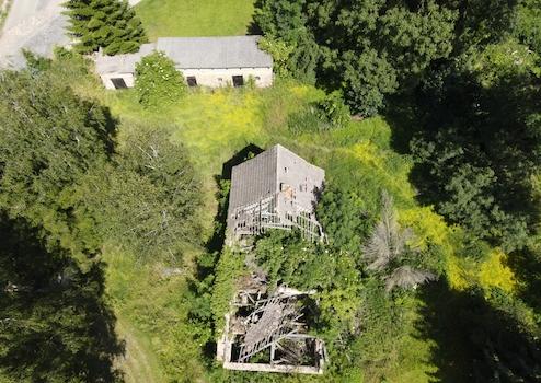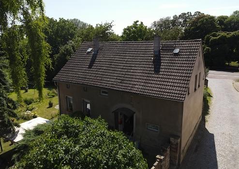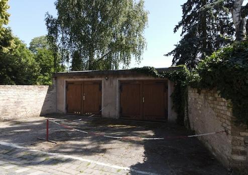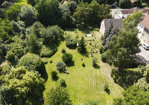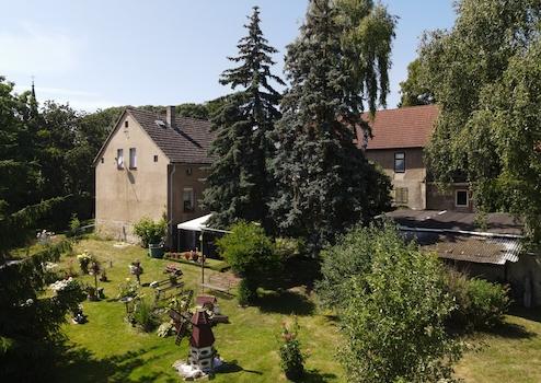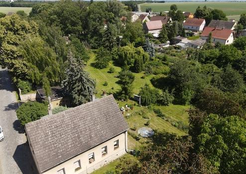 - Auf dem Grundstück befinden sich eine Doppelgarage, zwei Schuppen und eine eingestürzte Scheune (Ruine)
