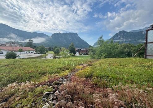 Die einladende, uneinsehbare Sonnenterrasse mit dem kleinen Wintergarten verwöhnt Sie mit einem atemberaubenden Bergblick und lädt Sie zum Entspannen und Verweilen ein.