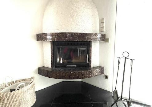 * großzügiges Wohnzimmer mit offenem Kamin,