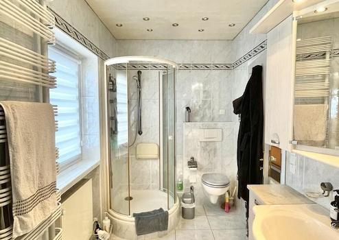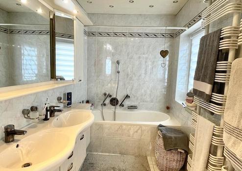 * Tageslichtbad mit Badewanne, Dusche, Doppelwaschbecken und WC
