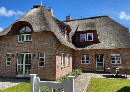 Neubau-Niveau: hochwertig erstelltes Reetdachhaus mit zwei Wohneinheiten