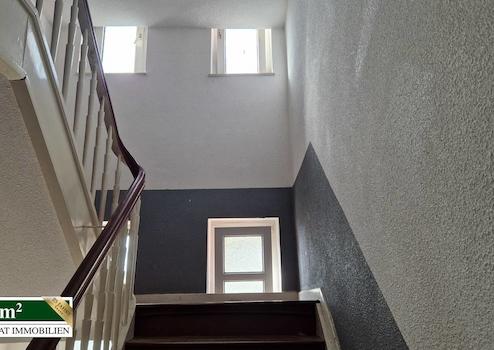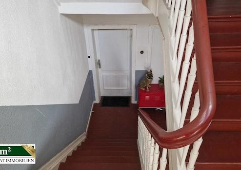 Das helle Treppenhaus sorgt für eine freundliche Atmosphäre und ermöglicht den Zugang zu den einzelnen Wohnungen, die sich über drei Etagen erstrecken. Zu jeder Wohnung gehört ein Kellerbereich, die ausreichenden Platz für Abstellmöglichkeiten bietet.