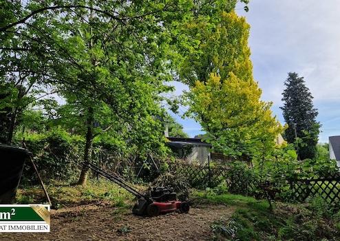 Ein Gemeinschaftsgarten in leichter Hanglage hinter dem Haus steht den Mietern zur Verfügung.
