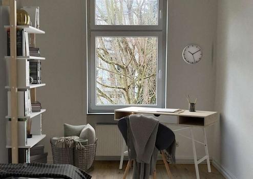 Diese teilsanierte Altbauwohnung aus dem Jahr 1920 bietet eine attraktive Anlagemöglichkeit in einer der begehrtesten Lagen der Stadt. Im Treppenhaus führt eine alte Holztreppe nach oben, hier spürt man den Altbaucharme, der sich in der Wohnung mit den typischen hohen Decken fortsetzt. Die Wohnung befindet sich im 2. Obergeschoss und besticht durch zwei gut geschnittene Zimmer, die durch die großen Fenster und den holzfarbenen Laminatboden hell und freundlich wirken. Die 54 m² verteilen sich auf die beiden Wohnräume, eine langgezogene Diele, ein weiß gefliestes Badezimmer mit Badewanne und Tageslicht sowie eine Küche mit ausgestatteter Küchenzeile und ausreichend Platz für einen Esstisch. Zusätzlich gehört ein Kellerraum zur Wohnung, der praktischen Stauraum bietet.