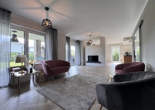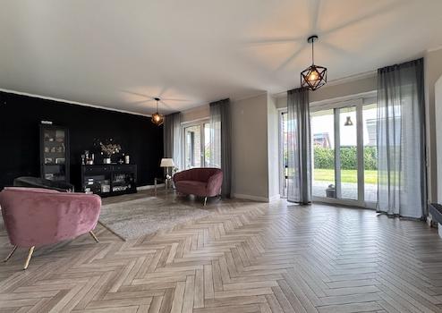 Dieses stilvolle und moderne Einfamilienhaus in Werpeloh vereint gehobenen Wohnkomfort mit einer durchdachten Architektur. Das hochwertig ausgestattete Einfamilienhaus bietet großzügigen Lebensraum für Familien, die Wert auf Qualität, Ruhe und ein entspanntes Wohnambiente legen. Im Erdgeschoss erwartet Sie ein offen gestalteter Wohn-, Ess- und Kochbereich, der durch große Fensterflächen optimal lichtdurchflutet ist und eine freundliche Atmosphäre schafft. Der gemütliche Kaminofen trennt die Bereiche dezent voneinander und sorgt gleichzeitig für wohlige Wärme. Zusätzlich finden Sie hier eine geräumige Diele, ein Büro, ein modernes Gäste-WC mit ebenerdiger Dusche sowie einen funktionalen Hauswirtschaftsraum mit Zugang zur Garage und vom angrenzenden Geräteraum zur Terrasse bzw. zum Gartenbereich. Im Dachgeschoss eröffnet sich ein privater Rückzugsort für die ganze Familie. Das Elternschlafzimmer ist mit einem eigenen Badezimmer verbunden und bietet direkten Zugang zu einem angrenzenden Ankleidezimmer - ideal für einen komfortablen Start in den Tag. Des Weiteren werden Ihnen drei ansprechende Kinderzimmer, ein zusätzliches Badezimmer sowie ein großzügiger Flur geboten, die viel Freiraum für die Bedürfnisse einer wachsenden Familie versprechen. Dieses Haus vereint stilvolles Wohnen mit praktischen Details und schafft ein harmonisches Zuhause für Menschen mit gehobenem Anspruch.