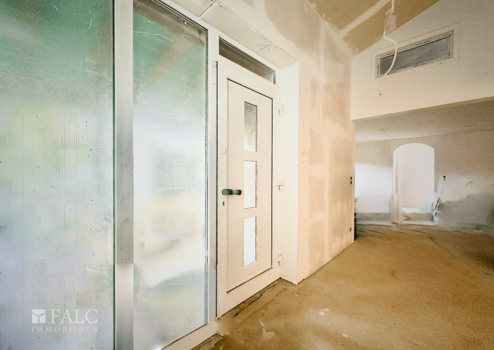 Der direkt angrenzende Anbau bietet ca. 120 m² ebenerdige Wohnfläche in moderner, offener Bauweise. Der Rohbau inklusive Putzarbeiten ist abgeschlossen, die Elektroinstallationen sind verlegt, und die Beheizung erfolgt über ein Klimaanlagensystem.