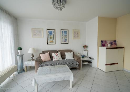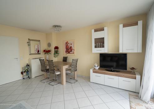 Bei der hier angebotenen Wohnung wird die konzeptionelle Vision des Architekten durch die werthaltige Bauweise und die durchdachte Raumgestaltung mit guten Stellmöglichkeiten deutlich. Die klassischen, weißen Bodenfliesen in Diele, Küche, Wohnzimmer, im Bad sowie im Gäste-WC schaffen ein harmonisches und stimmiges Gesamtbild. Für eine behagliche Atmosphäre sorgen die gemütlichen Teppichböden im Schlaf- und Kinderzimmer, die zusätzlichen Komfort und Wärme bieten.