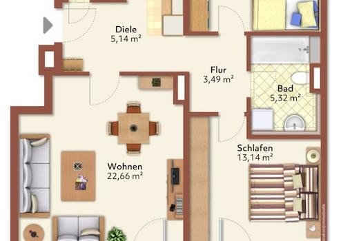 Diese Wohnung präsentiert sich freundlich und lichtdurchflutet. Der klare Grundriss, mit einer Wohnfläche von ca. 78,44 m², bietet echte Wohlfühlräume für jeden Lebensabschnitt. Die Wohnung befindet sich in der obersten Etage des dreistöckigen Hauses und ist bequem mit dem vorhandenen Aufzug erreichbar.