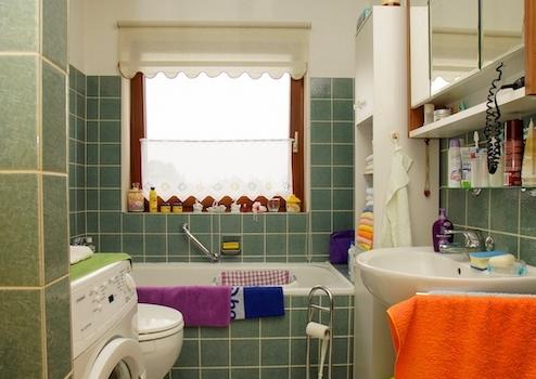 In der Küche und Badezimmer ist ein Fliesenfußboden vorhanden.