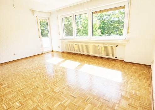 Von der Küche sowie dem Wohnzimmer aus gelangen Sie über eine weitere Tür direkt auf den nach Süden ausgerichteten Balkon. Hier haben Sie die meiste Zeit des Tages die Sonne zur Verfügung. Der Wohnbereich ist mit einem schönen Stäbchenparkett verlegt.