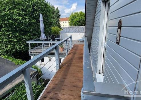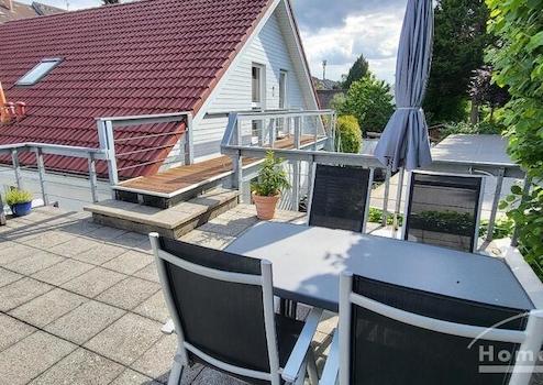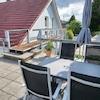 Ein echtes Highlight der Wohnung ist die großzügige, sonnige Dachterrasse. Sie ist mit stilvollen Gartenmöbeln ausgestattet und bietet viel Platz zum Entspannen, Sonnen oder für ein Frühstück im Freien.
