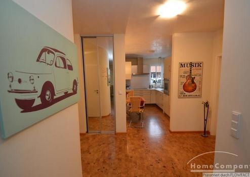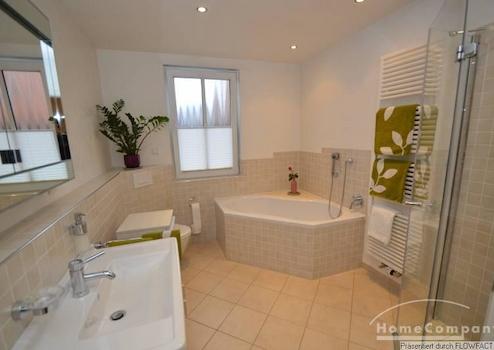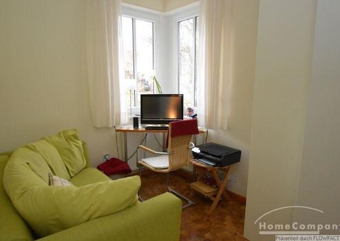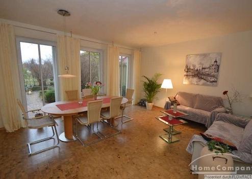 Diese Top Wohnung liegt ebenerdig in einer sehr ruhigen kleinen Wohnstraße. Alle Räume gehen vom zentralen Flur ab. Wobei die voll ausgestattete Küche mit einem Esstisch und das gemütliche Wohnzimmer offen zum Flur liegen. Die Terrasse mit anschließenden Garten ist vom Wohnzimmer und vom Schlafzimmer aus zu betreten. Das Schlafzimmer ist mit einem Doppelbett und einem großen Kleiderschrank ausgestattet. Durch das vorhandene Gäste /bzw. Arbeitszimmer ist auch eine Nutzung von 2 Kollegen möglich. Das Vollbad besitzt eine Dusche und eine Badewanne. Komplettiert wir die Wohnung durch ein Gäste WC. Ein PKW-Stellplatz befindet sich vor dem Haus. Dort ist auch für die Unterbringung von Fahrrädern ein Schuppen vorhanden.