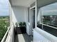 Im Wohnzimmer sticht ein über die gesamte Breite gehendes Fensterband mit Zugang zum Balkon hervor. Eine wundervolle Panorama Aussicht öffnet sich vor dem Betrachter und lässt den Blick in die Weite schweifen. Diese kann auch von der eleganten Sitzgarnitur aus genossen werden.