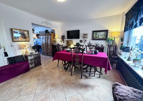 Wohn-/Esszimmer mit Ausgang zur teilweise überdachten Terrasse, Küche mit Einbauküche, Eingangsdiele, Gäste-WC;