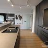 Küche: voll ausgestatte Designerküche mit Kochinsel und integrierter Muldenlüftung bietet elegantes Anbiente.