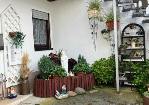 Gegenüber dem Haus befindet sich ein Außenbereich mit insgesamt sieben Pkw-Stellplätzen sowie einem zentralen Mülltonnenplatz. Zusätzlich stehen zwei weitere Stellplätze auf der Gartenfläche zur Verfügung.