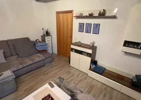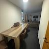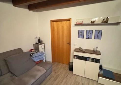 Beim Betreten der Erdgeschosswohnung im Anbaubereich gelangt man zunächst in das helle Wohnzimmer, das den zentralen Mittelpunkt der Wohnung bildet. Von hier aus führt ein Durchgang auf der linken Seite in die Küche, die neben der Kochzeile auch Platz für einen kleinen Essbereich bietet. Direkt angrenzend an die Küche befindet sich das Badezimmer, das mit Dusche, WC und Waschbecken ausgestattet ist. Rechter Hand des Wohnzimmers liegt das Schlafzimmer.