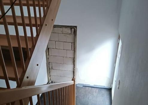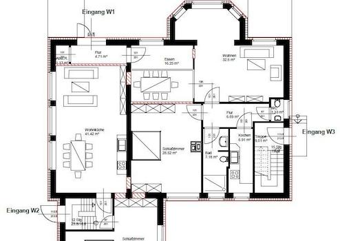 Im Nachgang ist das gesamte Erdgeschoss entkernt und hinsichtlich der räumlichen Aufteilung zu zwei Wohnungen umgestaltet worden.