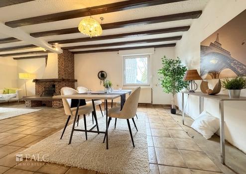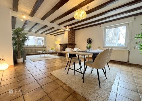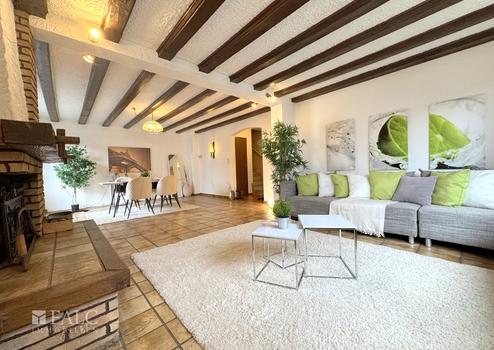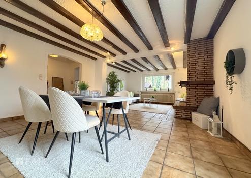 Im Erdgeschoss befindet sich ein großzügiger Wohn- und Essbereich, der viel Platz für gemeinsame Stunden mit Familie und Freunden bietet. Die angrenzende Küche verfügt über einen direkten Zugang zur Terrasse, wodurch sich das Leben besonders in den warmen Monaten nach draußen verlagern lässt.