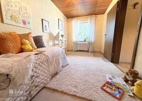 Im Obergeschoss stehen drei geräumige Schlafzimmer zur Verfügung, die flexibel genutzt werden können – sei es als Elternschlafzimmer, Kinderzimmer oder Homeoffice. Zudem gibt es hier zwei Bäder, die für ausreichend Komfort sorgen. Ein Balkon lädt zum Verweilen im Freien ein, und ein praktischer Abstellraum bietet zusätzlichen Stauraum.
