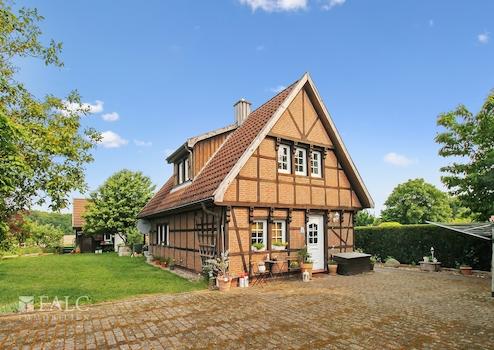 Ein absoluter Hingucker ist das Eichenfachwerk an diesem großartigen Landhaus mit all seinen Extras.