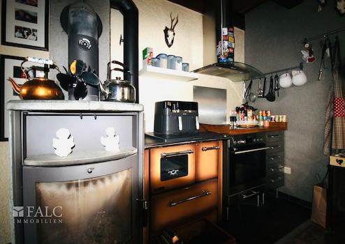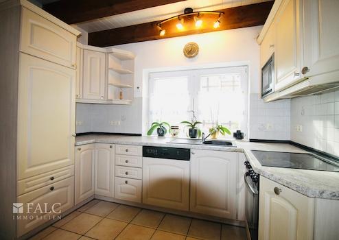 Die Küche, die sich vom Wohnzimmer aus erreichen lässt, ist funktional gestaltet und bietet ausreichend Arbeitsfläche sowie Stauraum. Hier können Sie Ihre kulinarischen Fähigkeiten voll entfalten.