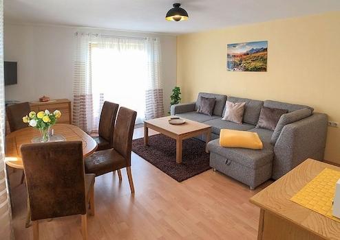 Ein Frühstücksraum/Aufenthaltsraum mit Gartenterrasse steht im Erdgeschoß zur Verfügung.