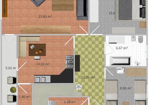 Die Wohnungens sind voll möbliert und mit Küchen ausgestattet.
