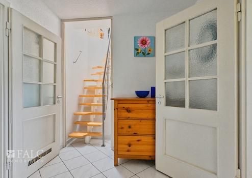 Ein echtes Schmuckstück ist das stilvolle Treppenhaus mit seinem Wendeldesign – es verleiht dem gesamten Haus eine elegante, nostalgische Atmosphäre, die Liebhaber klassischer Altbauten begeistert.