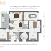 Die Wohnung im 1. Obergeschoss, ebenfalls mit ca. 97 m² Wohnfläche und entspricht im Grundriss weitgehend dem Erdgeschoss – mit dem Unterschied, dass statt der Terrasse ein Balkon zur Verfügung steht.