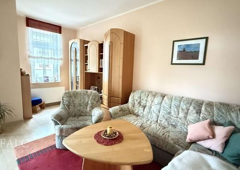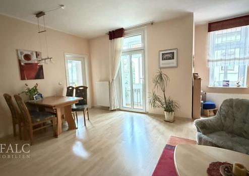Der Flur führt Sie direkt in das großzügige Wohnzimmer, das durch seine Fenster und der verglasten Logia mit viel Tageslicht erhellt wird.