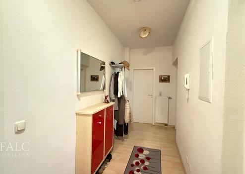 Beim Betreten dieser charmanten Wohnung mit 74m² Wohnfläche werden Sie von einem einladenden Flur empfangen, der ausreichend Platz für eine Garderobe bietet.