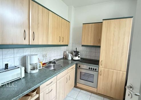 Am Wohnzimmer angrenzend befindet sich eine separate Küche mit Fenster.