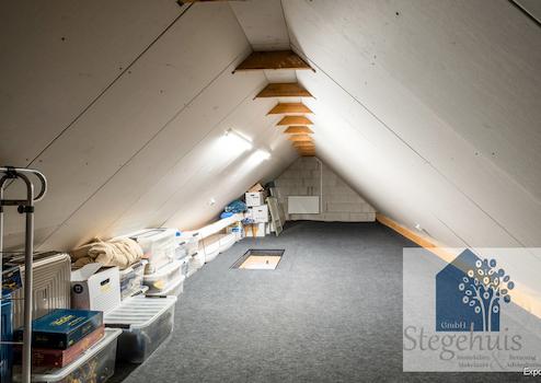 Das Dachgeschoss ist über eine ausziehbare Treppe erreichbar. Der Dachboden erstreckt sich über die volle Länge des Hauses und wird als Lagerraum genutzt. Der Dachboden ist Isoliert.