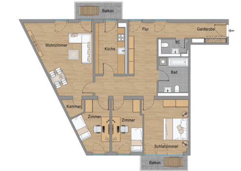 Bezugsfreie 4-Zimmer-Wohnung mit zwei Balkonen in zentraler Lage