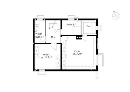 Im Kellergeschoss finden Sie die üblichen Räume: Heizung, Waschen, Vorrat, Hobby.
