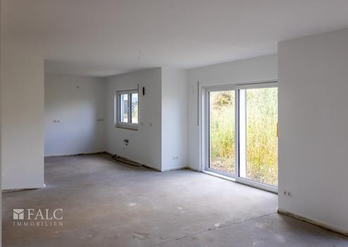 Der Durchgang in den Koch-Wohn-Essbereich erlaubt bereits einen Blick über die Terrasse in den Garten und wenn man in diesen offenen Wohnbereich eintritt, fühlt man sich gleich wie Zuhause.
