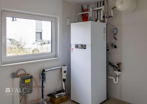 Beheizt wird das Haus über eine Fußbodenheizung mit einer Viessmann-Luft-Wasser-Wärmepumpe. Alle Räume verfügen über dezentrale Lüftungsgeräte, die einen kontinuierlichen Luftaustausch bei geringstem Wärmeverlust ermöglichen. Dadurch erreicht man das Effizienzlevel A+ und ein gesundes, angenehmes Raumklima.